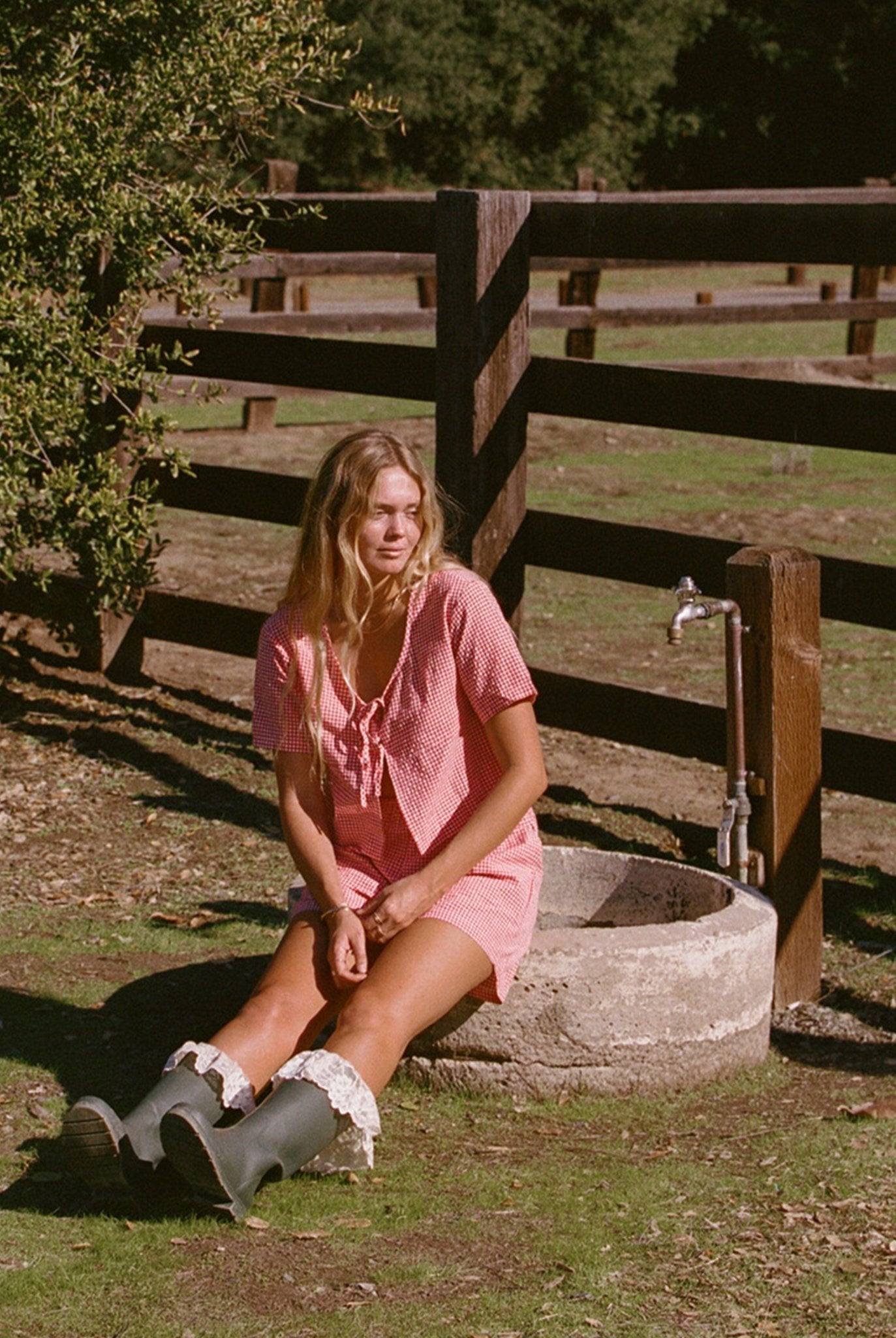 This red and white gingham set is a matching short and top set features a cropped top and comfortable high-waisted shorts. Perfect for picnics, casual outings, or sunny adventures. This red and white gingham set has a tie at the top center below the flattering scoop neck and a clasp below for closure. Enjoy this sweet matching set and do take pictures! Red and White Gingham Set for the win!